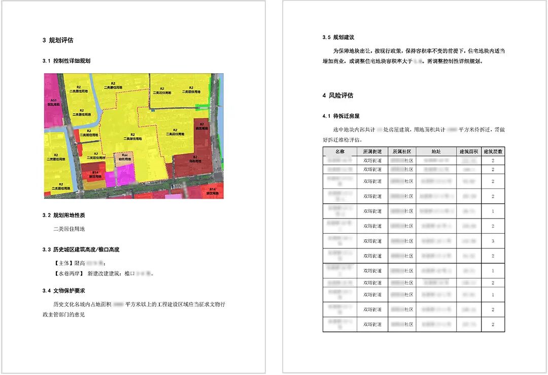 4.实现“一”键成果共享,打通协同链路。根据用户需求自动生成用地、选址评价报告(如图4所示),实现选址方案、可视化成果、资源图表等一键转发至政府部门、企业、园区等相关方,实现规划决策、政府推介、企业选址等场景的高效联动,针对选址方案与调整建议进行高效对接,简化沟通流程,提升跨主体协同效率。