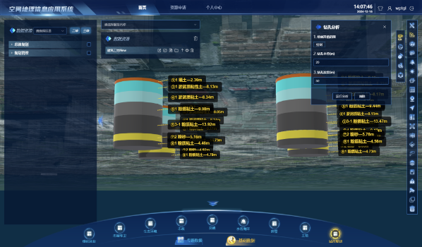 GIS中台由GIS数据管理系统与GIS数据应用系统组成。管理系统实现道路塌陷二三维空间地理信息入库、编目、服务发布与共享管理。应用系统整合点面与三维数据,实现道路塌陷数据二三维一体化、地上地下一体化、动静一体化、BIM数据分层分级可视化,开发实现了空间分析功能,并具备数据远程计算能力,提供了地表及地下详细分析在内的多项专业功能。