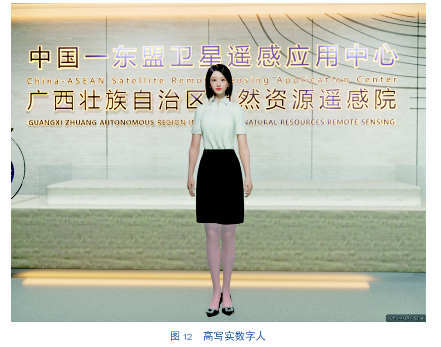 外形:高写实数字人。采用先进的扫描技术和摄影测量方法,收集真实人物的外貌数据,经过精细处理和模型重建,融合各种细节信息,从皮肤纹理到肌肉运动,再到微表情和眼神交互,实现了数字人的高逼真度,如图12所示。