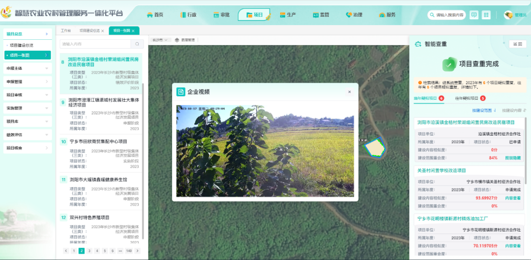 通过统一平台为农业经营主体提供项目申报入口,建立项目申报、审核、实施、验收、资金拨付、绩效评价等全生命周期管理流程,梳理现有农业项目申报查重痛点,在现有建设内容等文字信息查重基础上,拓展项目空间位置查重,使农业补贴政策更符合农业发展实际,进一步提升政府农业精准水平。