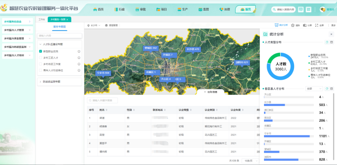 基于“一图、一平台、一中心”的相关成果,构建多元化的“智慧农业农村+”应用体系,包括农业项目全生命周期管理、高标准农田监督管理、乡村振兴人才管理、农产品质量安全监督管理、农村人居环境监管和农业经营主体监测等专题应用,重塑乡村治理模式,助力乡村振兴战略实施。