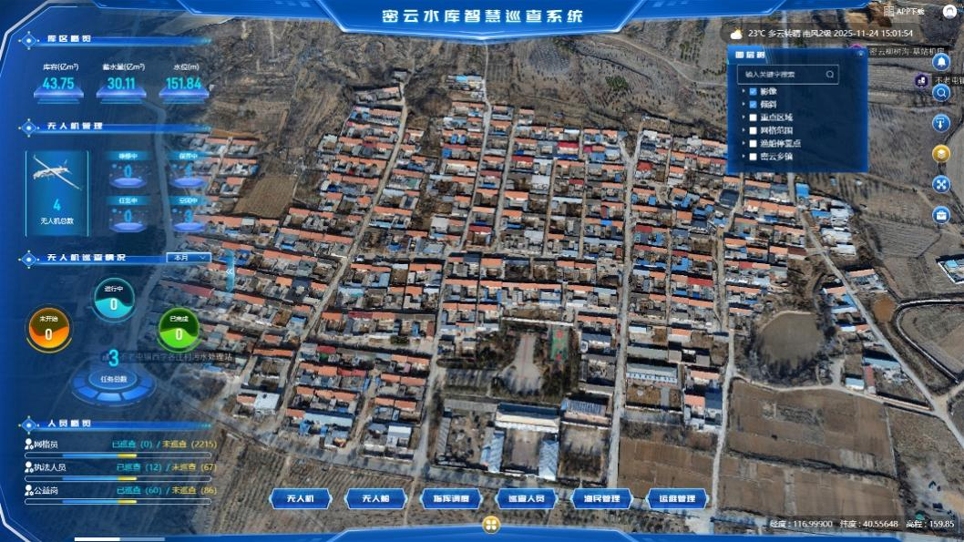 本研究以落实《进一步加强密云水库水源保护工作的意见》为政策导向,围绕“保障首都水源安全、加强生态文明建设”的核心任务,针对当前水库管理中存在的监管盲区大、人员进入复杂、违法行为隐蔽性强、执法响应滞后等难点痛点问题,提出建设一套基于无人机、实景三维、数字孪生、AI图像识别与GIS技术融合的智慧巡查系统,实现对密云水库及周边区域的全方位、全天候、高精度立体感知与智能监管。