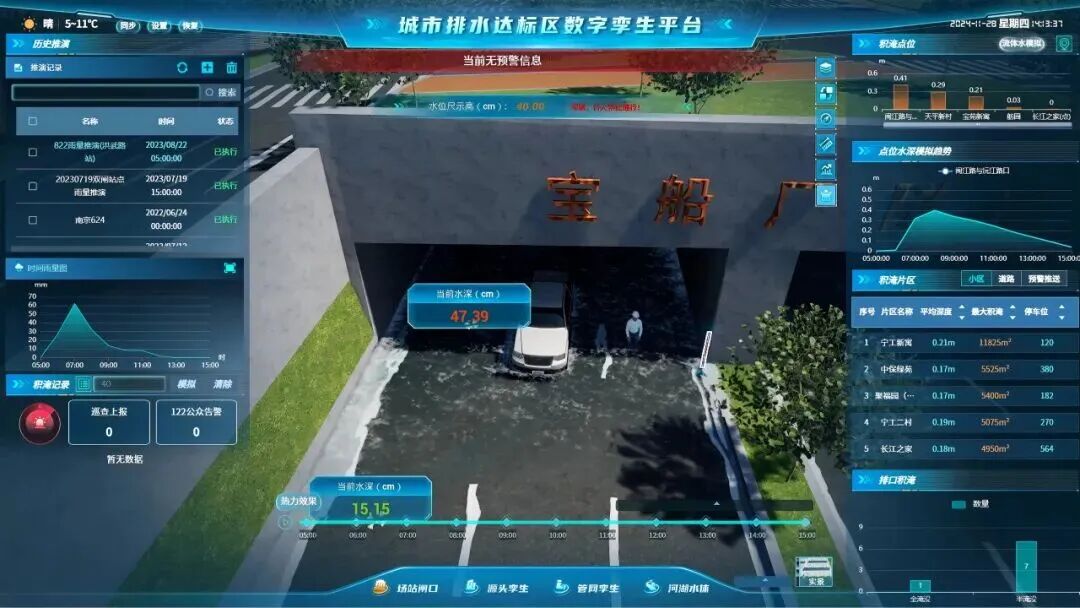 打造“视频AI识别+数字孪生仿真”协同应用新模式。一方面,通过深度学习技术将普通监控视频实时转化为结构化积水深度数据,显著拓展感知能力;另一方面,在试点区域构建涵盖泵站、水闸及管网的高保真数字孪生系统,实现三维可视化呈现与调度方案虚拟推演,形成“实景感知-虚拟预演-联动优化”的先进决策机制。